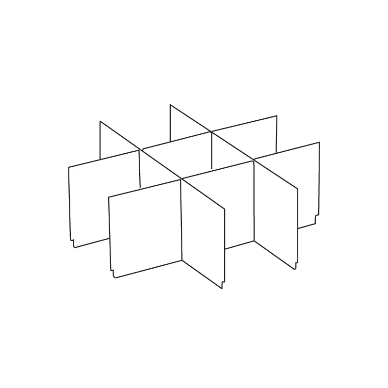 Protective cardboard inserts for mailer and product boxes, dividing the space into one, two, or three compartments.